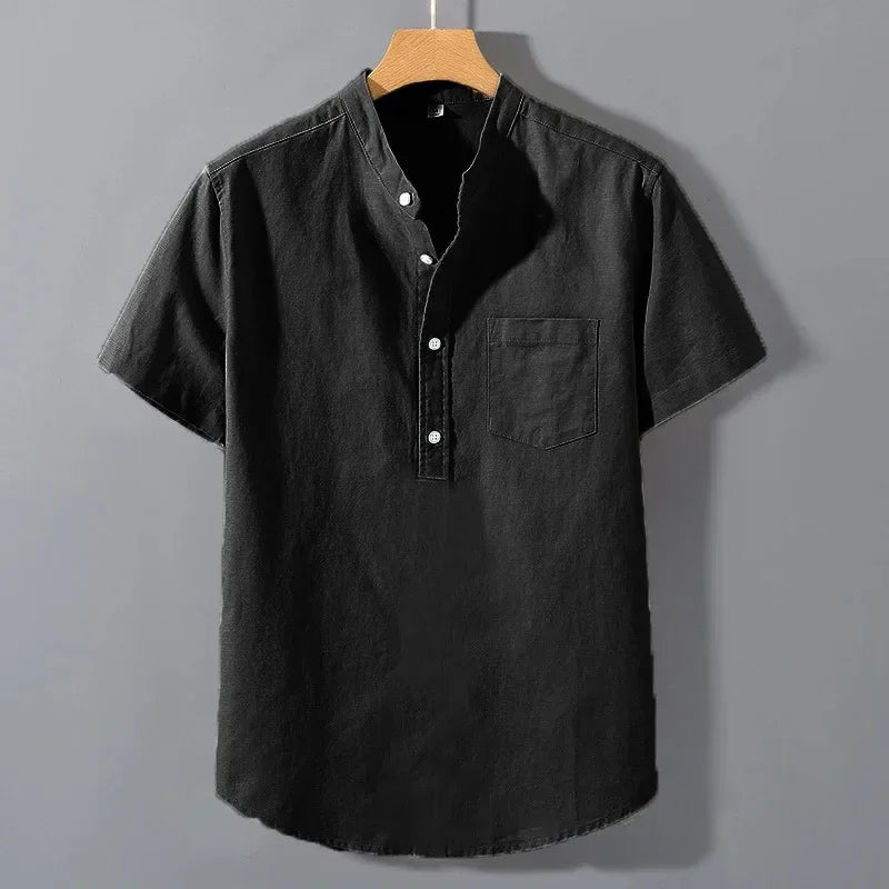 Style & Fit: Casual short-sleeve tee with a classic button closure for a modern touch.