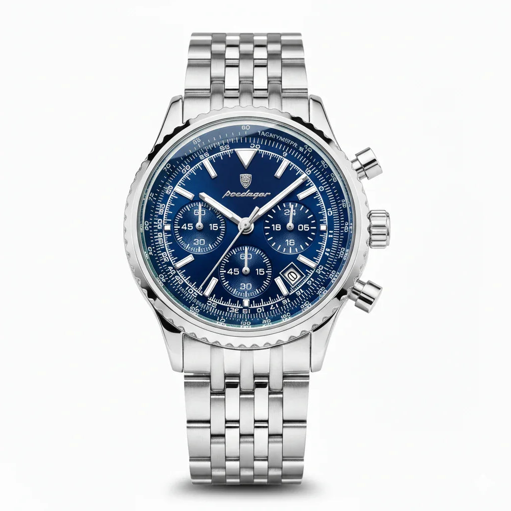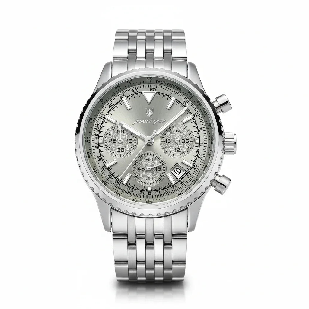 Functional Precision: Equipped with luminous hands, chronograph, automatic date, and water resistance up to 3 Bar — practical for both workdays and casual swimming.